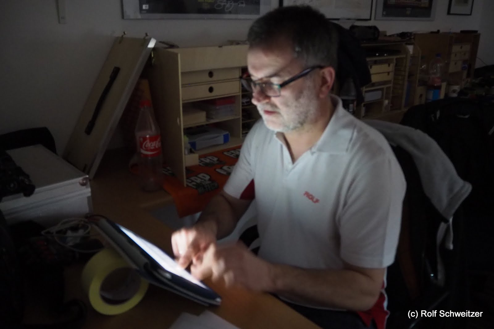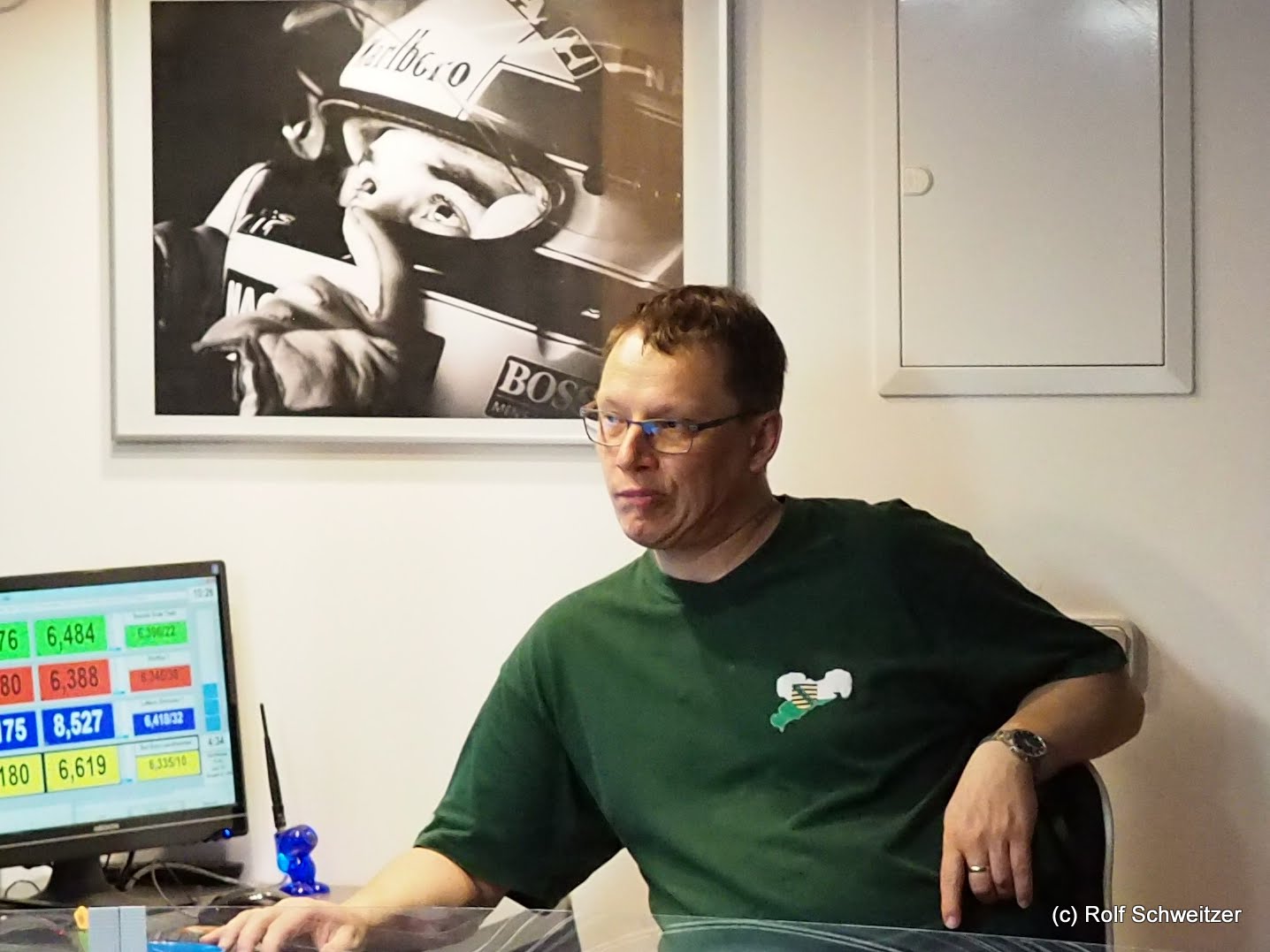 Rolf jetzt auf Grün, keine guten Zeiten und vor allem viele Abflüge brachten ihm drei Runden Rückstand auf Holger auf Rot ein. Im Gesamtclassement machte das dann noch fünf Runden Vorsprung.
